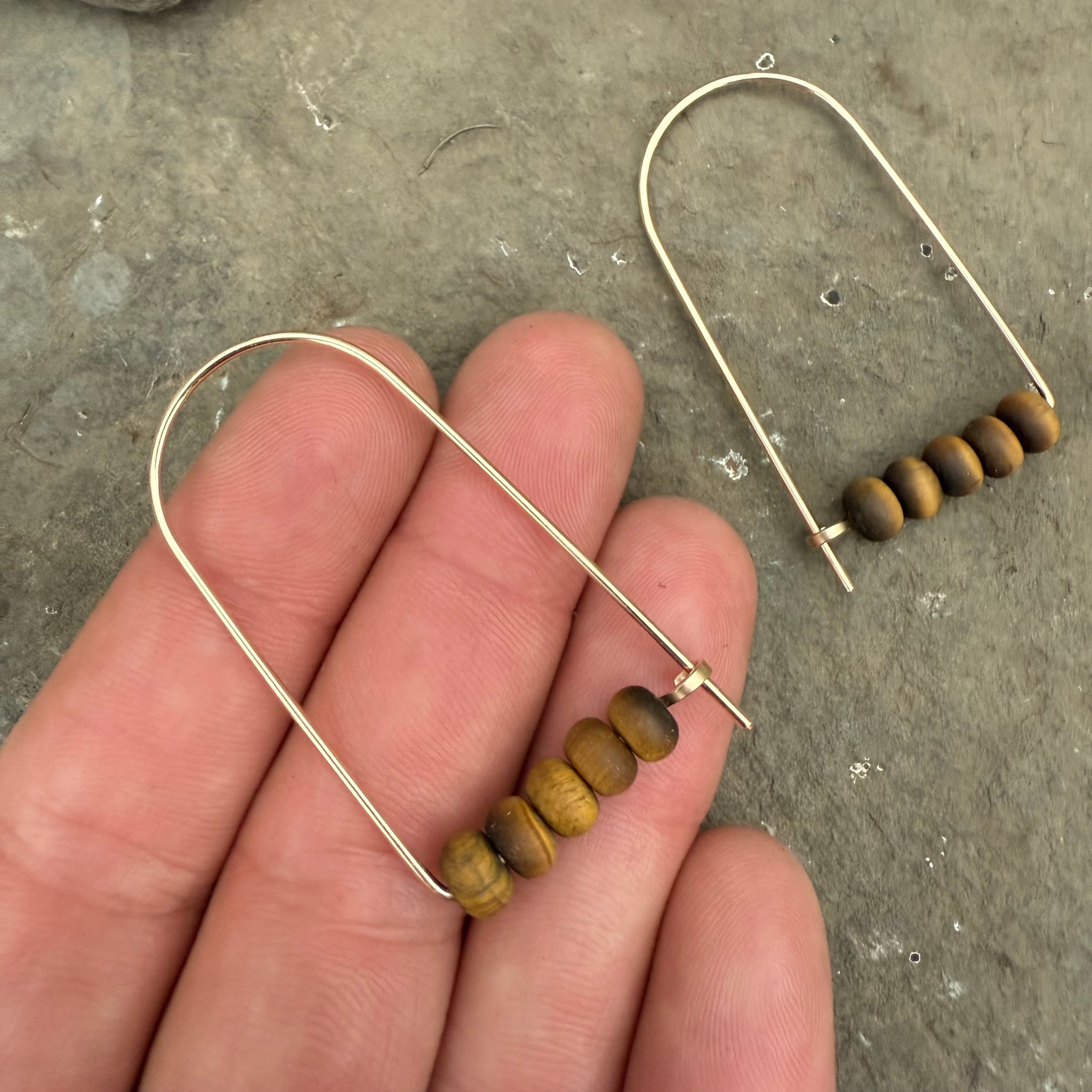 Gold Fill Arc Earrings with Stone Bead by Jovy Rockey