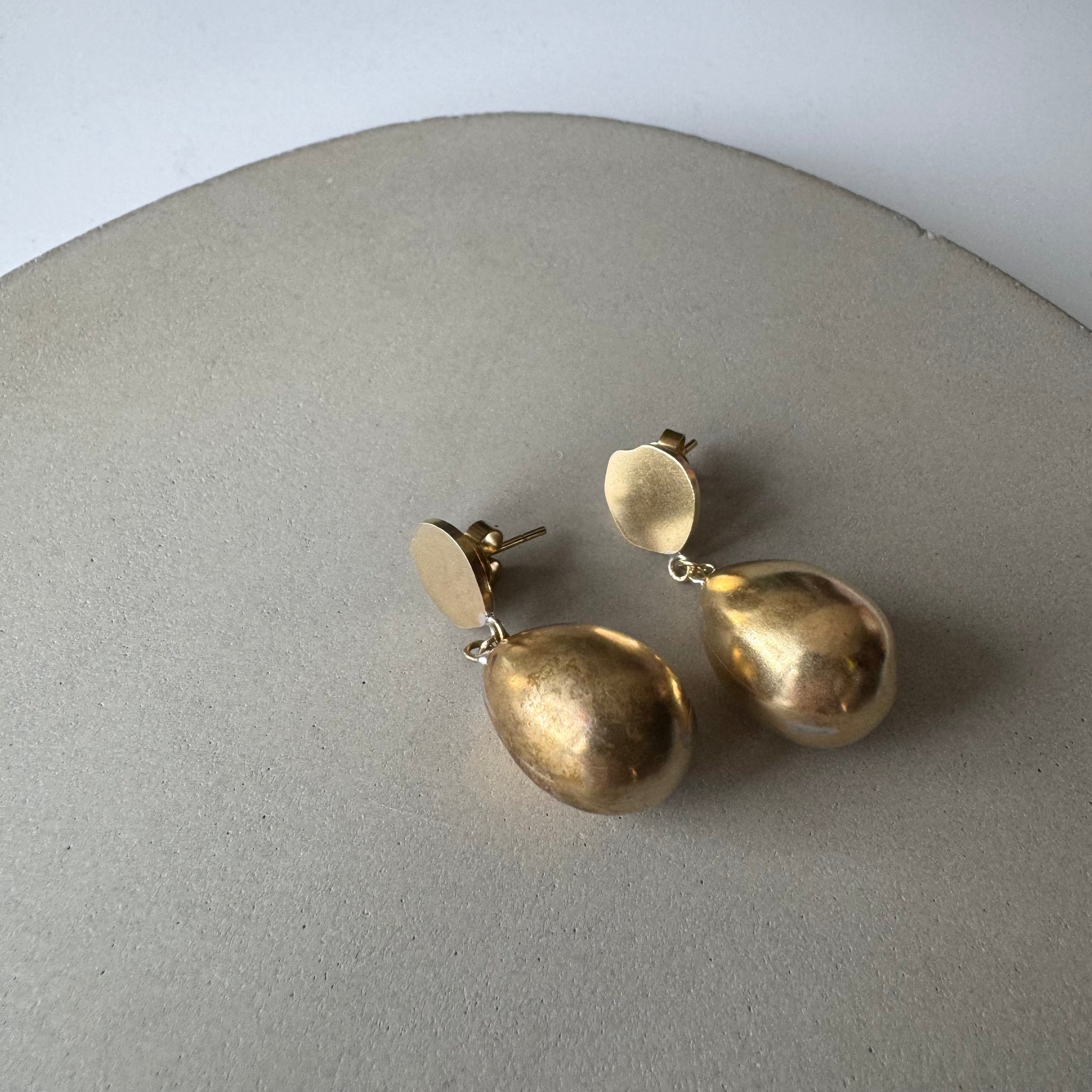 The Work: Sleek and sophisticated with a variety of textures, these brass Pod Drop Earrings exude elegance and luxury. These earrings pair beautifully with our Pod and Skipping Stones Collection. While our designs are modern, our approach is based in capturing the ancient. We collaborate with master craftspeople to create each piece.