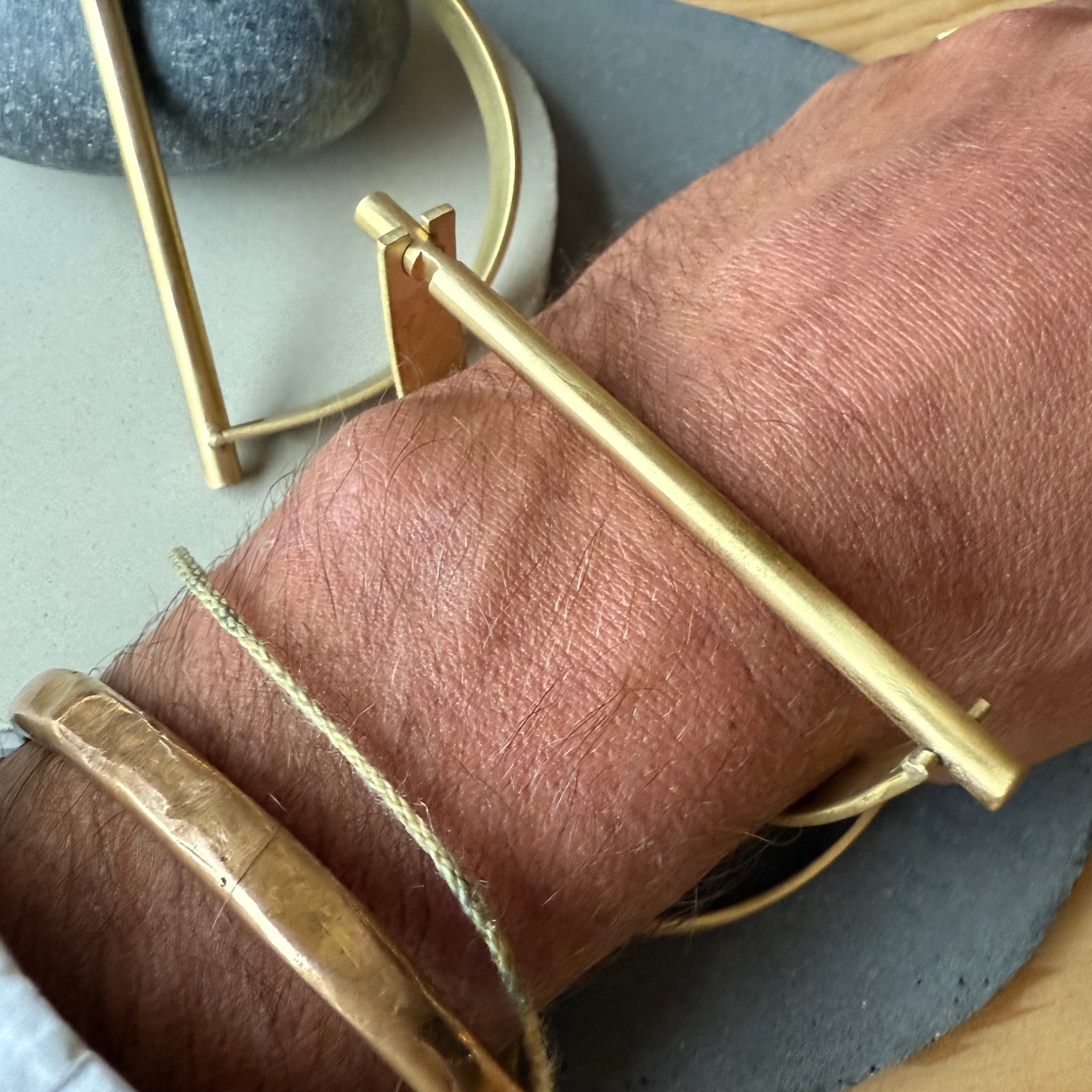 Bar and rod brass bracelet with ingenious clasp by Eric Silva of LA.