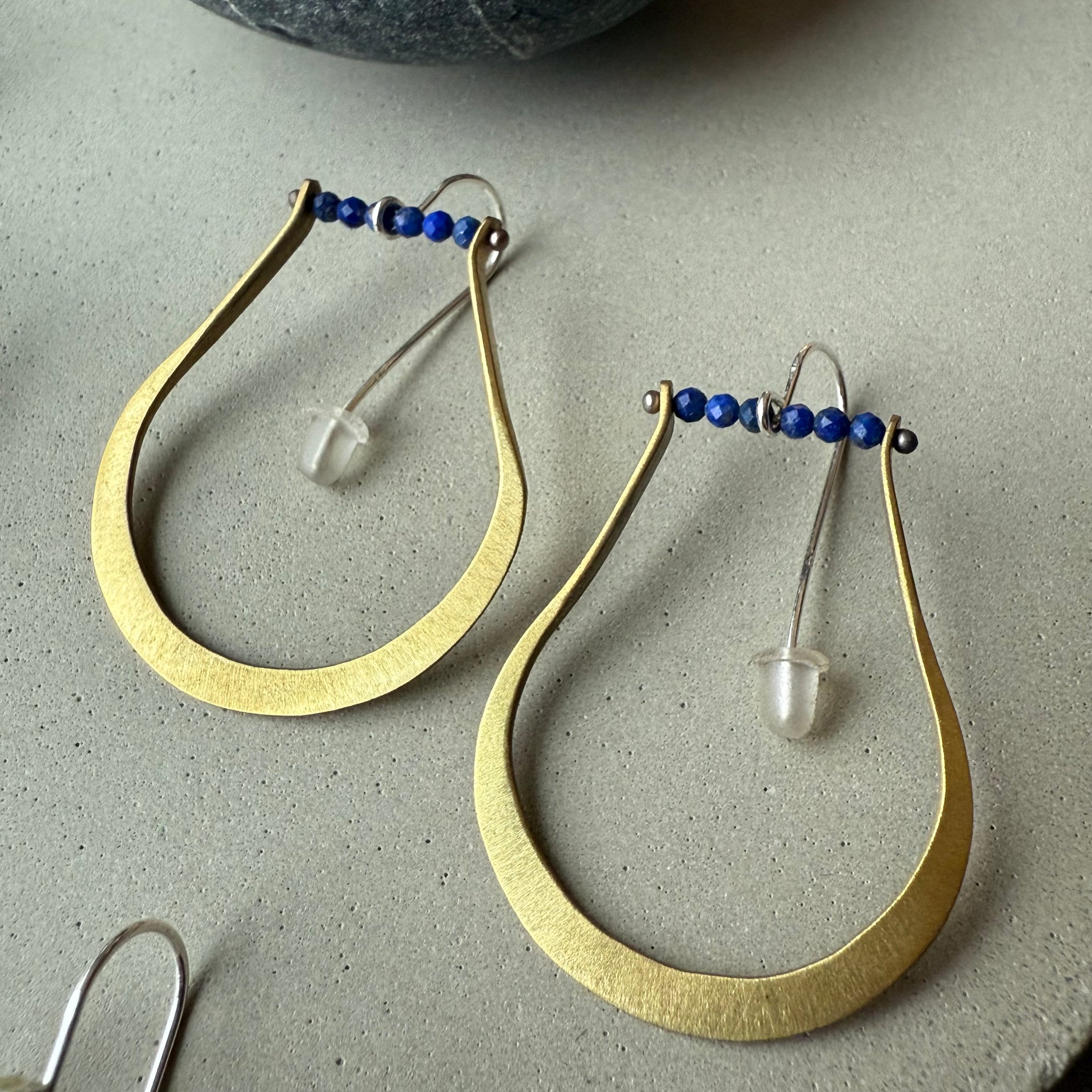 Gorgeous pair of  brass earrings with a sweet swing and a bit of semiprecious stones by the talented Eric Silva of LA.