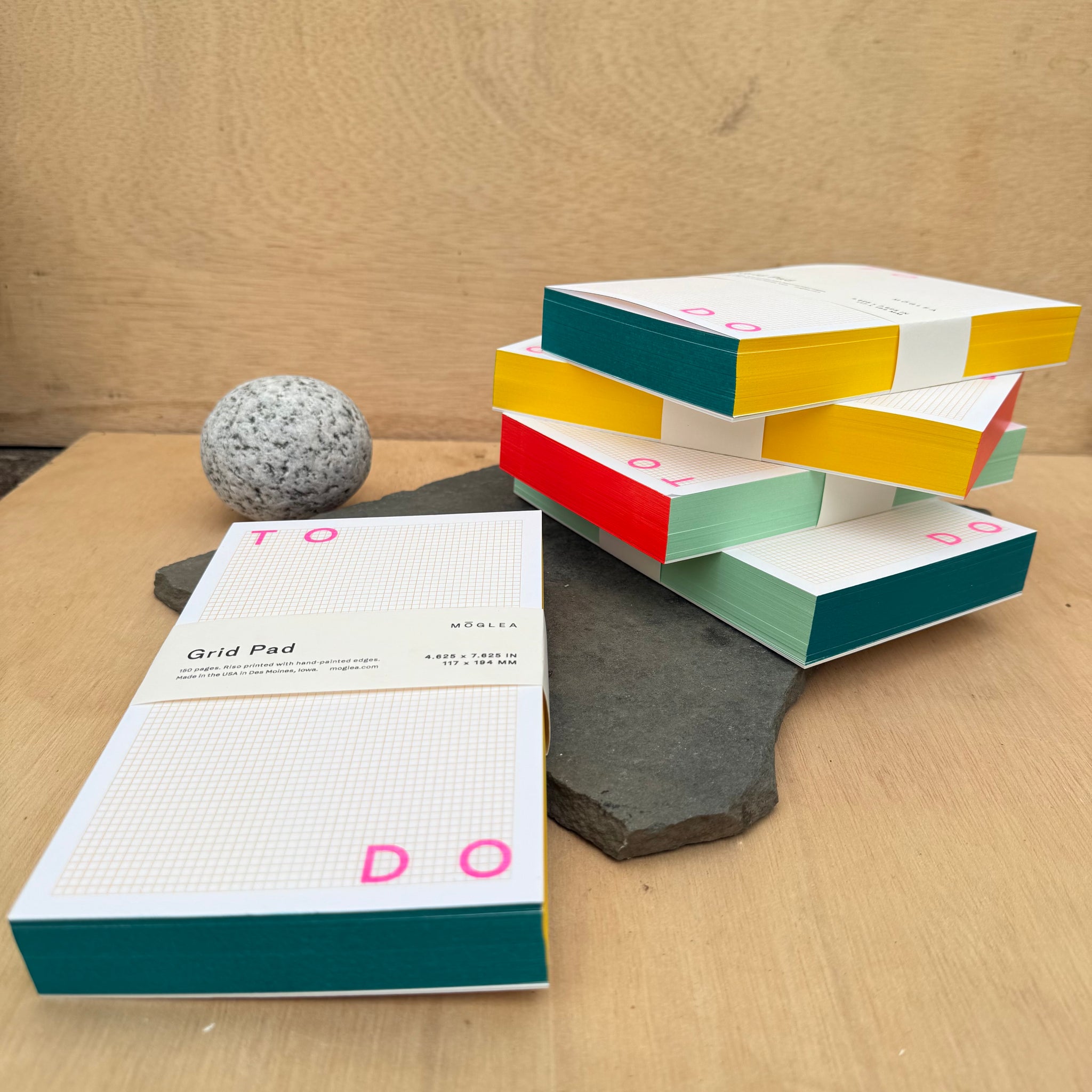 Grid pad with brightly colored hand-painted edges. Each pad is riso printed and artfully crafted by hand in our studio.